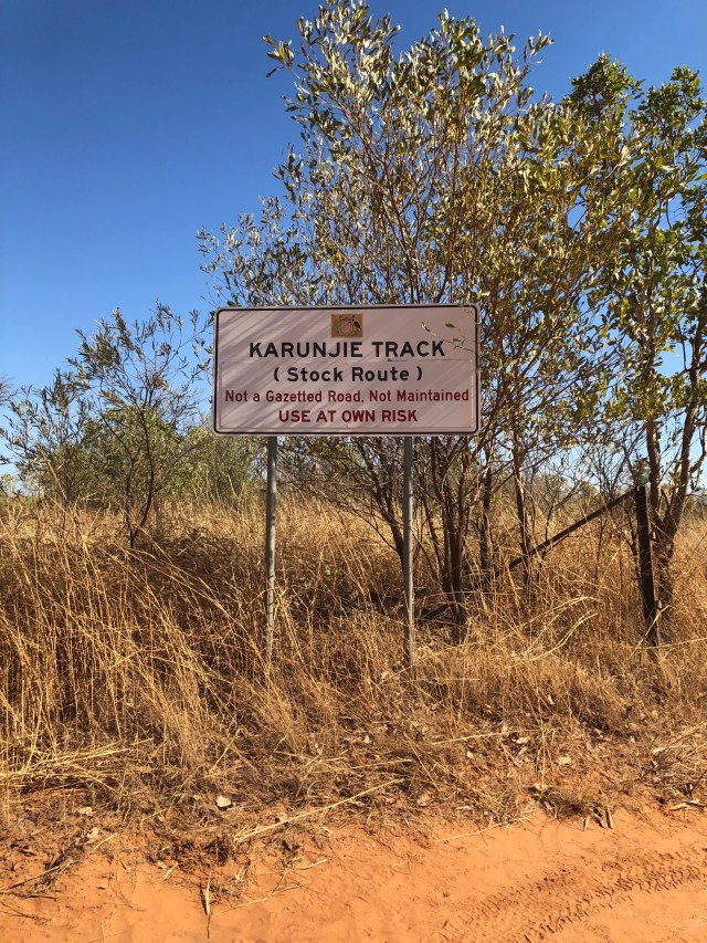 The final section of the track we were told it gets slow. Excited for what was ahead we took the trusty Steed in and out of low four wheel drive as we crawled and flexed over rocks and boulders with the odd washed out track as a challenge. We were finally properly testing out the old girl with her new ass end over real four wheel drive obstacles and terrain. It handled it without a hiccup. Easily came, easily conquered we completed the Karunjie Track. As we neared the final bend we past a warning sign, ‘use at own risk’.