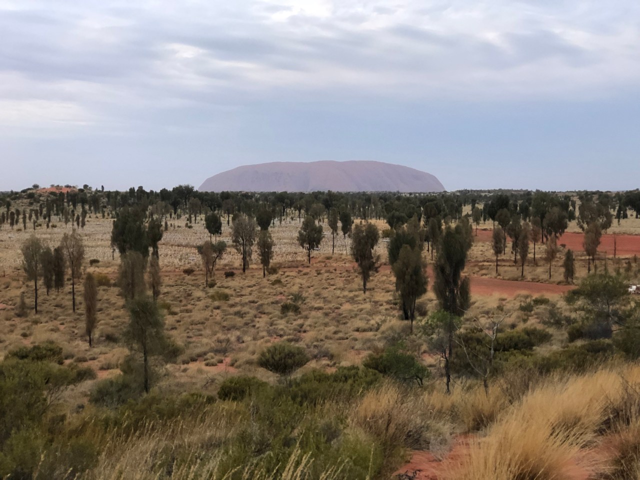 As the sun slowly creeped up, the field changed. The bush that had been hidden behind the display was slowly coming into view. We made our way back up the sand dune to overlook the field and watch the sun change the colour of Uluru. Disappointingly, there were too many clouds and the sun only came into view between the gaps. I must add, I was freezing! Not being used to the cold, it was a shock to my system.